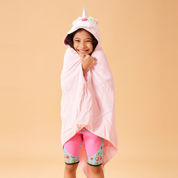 Prosop de baie pentru bebelusi, cu gluga, densitate mare, 360g/mp, model unicorn