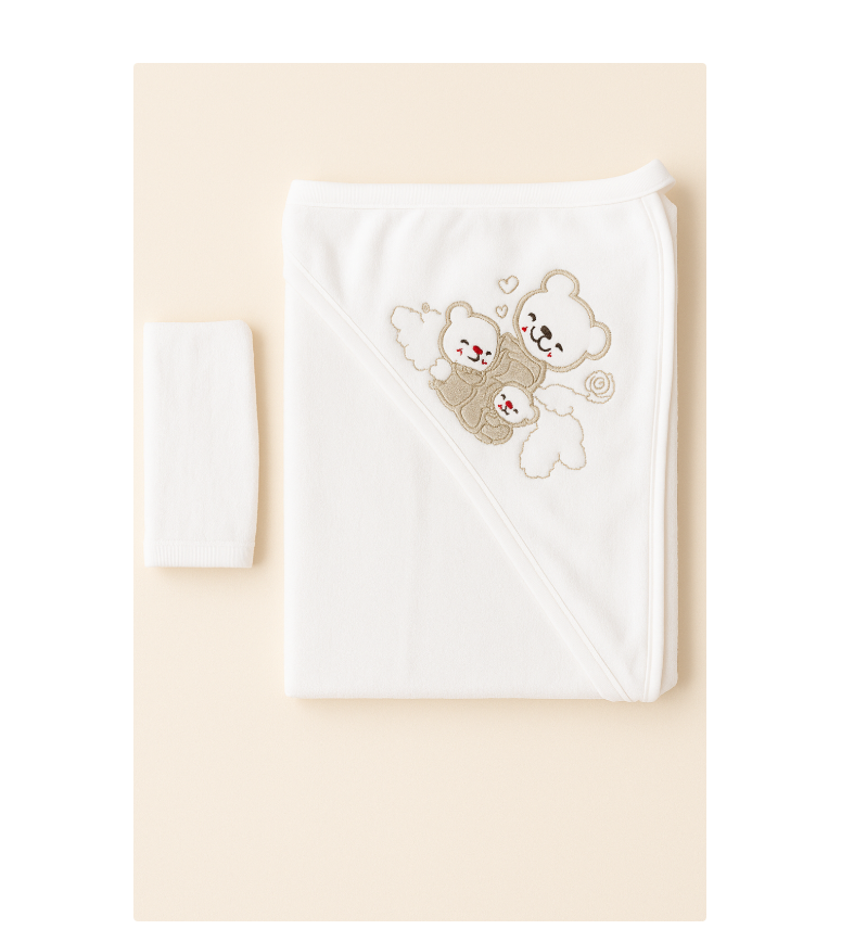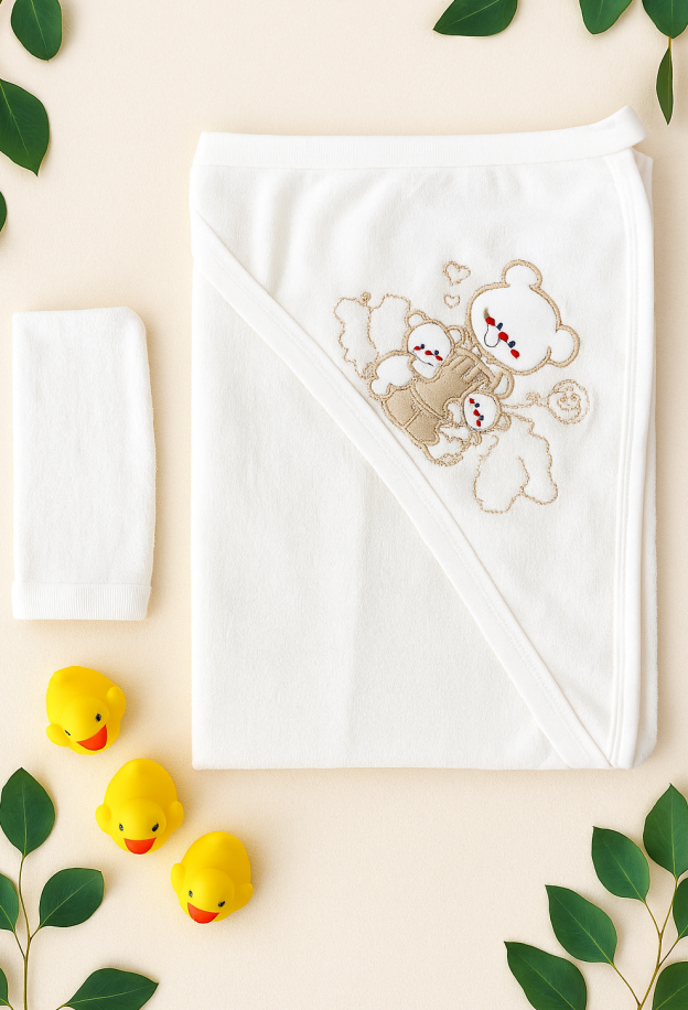 Prosop De Baie Pentru Bebelusi, Manusa inclusa, Ursuleti, 90 x 70 cm