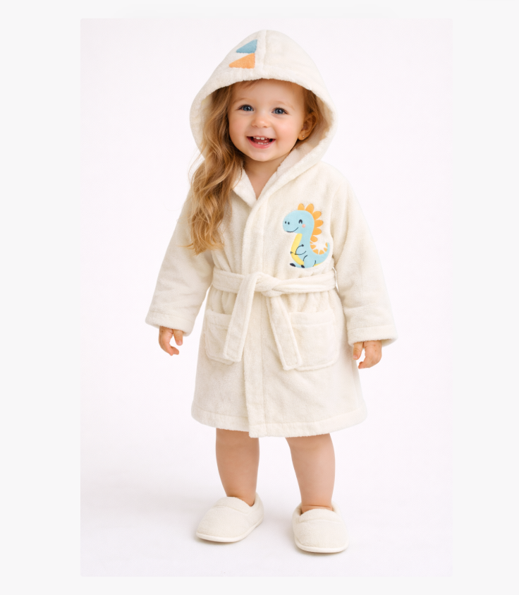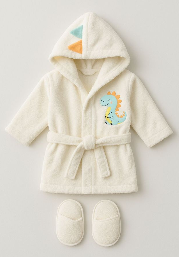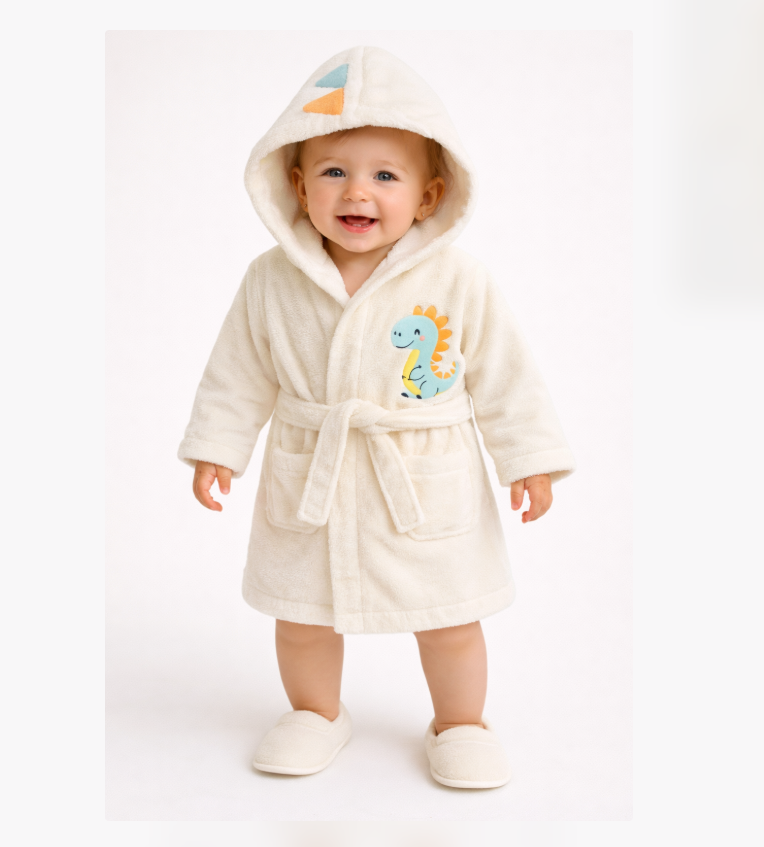 Halat de baie, cu gluga si papucei, Capison animalut, Alb