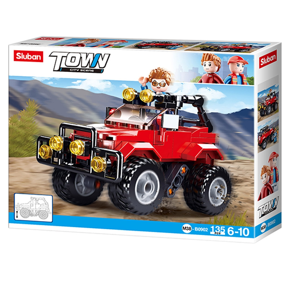 Set de constructie Town, 135 piese, Masina Offroad, mecanism Pull-Back - Sluban
