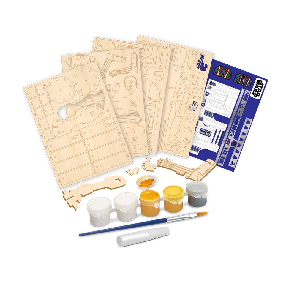 Star Wars - Macheta de asamblat, C-3PO & R2D2, 110+ piese din lemn - WOOD WORX