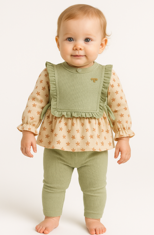 Descoperă setul perfect pentru bebelușa ta! Fabricat din bumbac 100%, acest set adorabil este ideal pentru pielea sensibilă a bebelușilor.