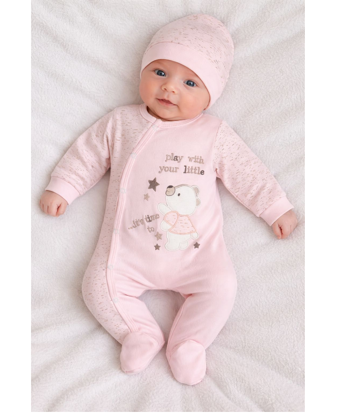 Salopeta cu caciulita, bebe, Ursulet, corai