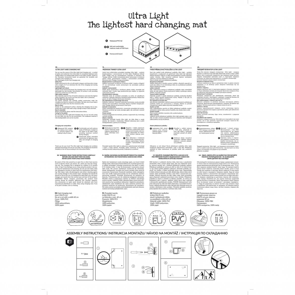 Salteaua de înfasat Ceba Baby Ultra Light 1.2kg reprezinta un simbol al modernității marca Ceba baby, singura saltea de infasat prezenta pe piata cu o greutate excepțional de mica doar 1,2 kg, grosime a suprafetei pe care este pozitionat copilul de 3cm care se traduce prin suprafata moale, delicata si confort sporit pentru bebelusul dumneavoastra in conditii de maxima siguranta. Un interior inovator de tip fagure dezvoltat de Ceba Baby garanteaza durabilitatea și rezistența saltelei de infasat oferind un plus de confort, manevrabilitate, durabilitate si siguranta.
