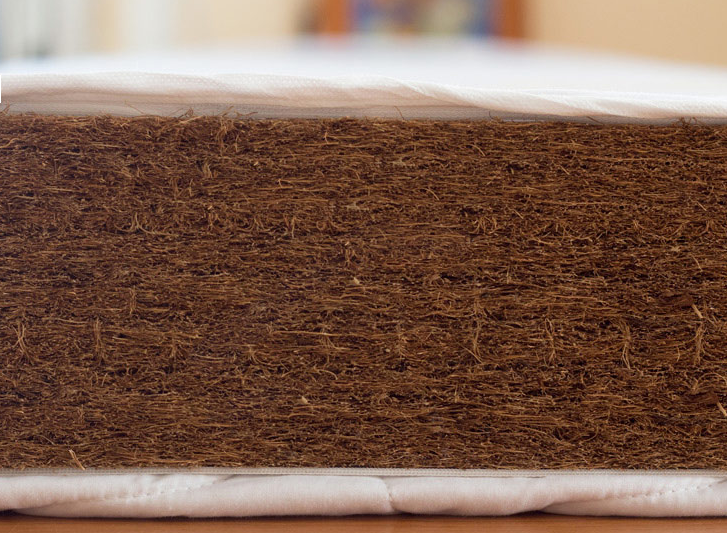 Nuantele colorate neuniform care se pot observa in interiorul stratului de cocos provin de la laptele de latex cu care sunt tratate placile de cocos pentru a le stabiliza si a le oferi elasticitate.