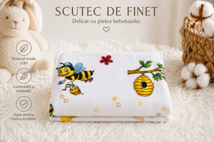 Datorită texturii fine și absorbante, scutecele din finet permit pielii să respire și previn supraîncălzirea, fiind perfecte pentru orice anotimp. Designurile vesele, cu imprimeuri colorate și prietenoase, adaugă un plus de stil și personalitate fiecărei utilizări.