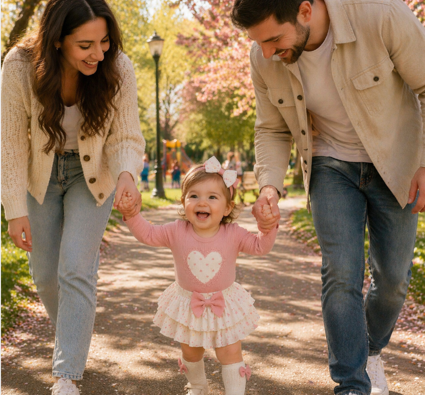 Set adorabil pentru fetițe, compus din body roz cu mânecă lungă și fustiță vaporoasă, perfect pentru ținute elegante sau de zi cu zi. Body-ul este realizat din material moale, ribbed, cu aplicație în formă de inimă, oferind confort maxim și un look delicat.