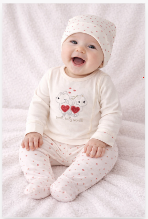 Set 3 piese, Pisicutele bunicii, 0-3 luni, alb
