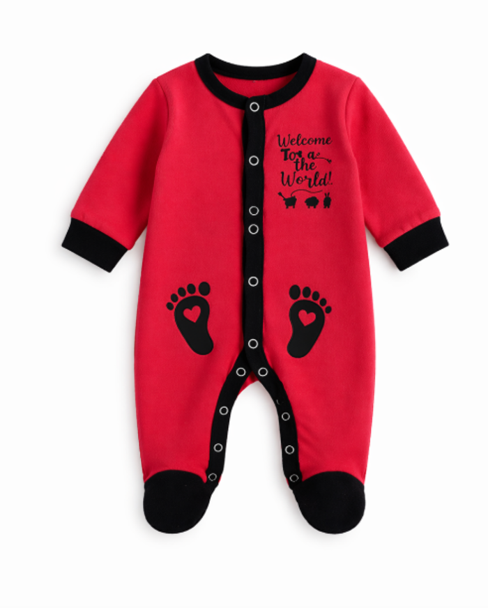 Designul practic cu capse pe toată lungimea permite îmbrăcarea rapidă și schimbarea ușoară a scutecului, fără disconfort pentru copil. Modelele sunt decorate cu imprimeuri adorabile – ursuleți, panda și mesaje vesele – perfecte pentru un look modern și jucăuș.