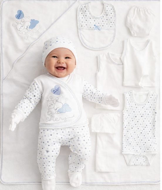 Set 10 piese haine Bebelusi, 100% Bumbac antialergic, 0-4 luni, Alb