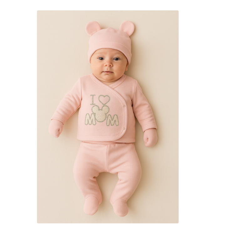Set adorabil pentru bebeluși, perfect pentru primele luni de viață (0-3 luni)! Fabricat din bumbac pieptănat moale și delicat, asigurând confort maxim pentru pielea sensibilă a bebelușului.