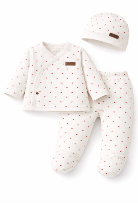 Set bebeluși, 3 piese, Inimioare, 0-3 luni