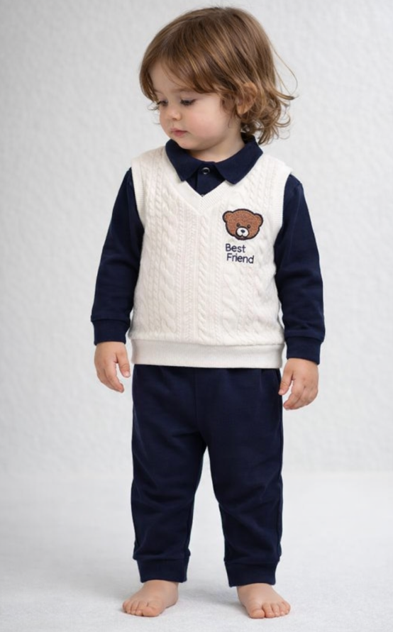 • Vestă: O vestă călduroasă și stilată, perfectă pentru a menține bebelușul confortabil în zilele mai răcoroase.