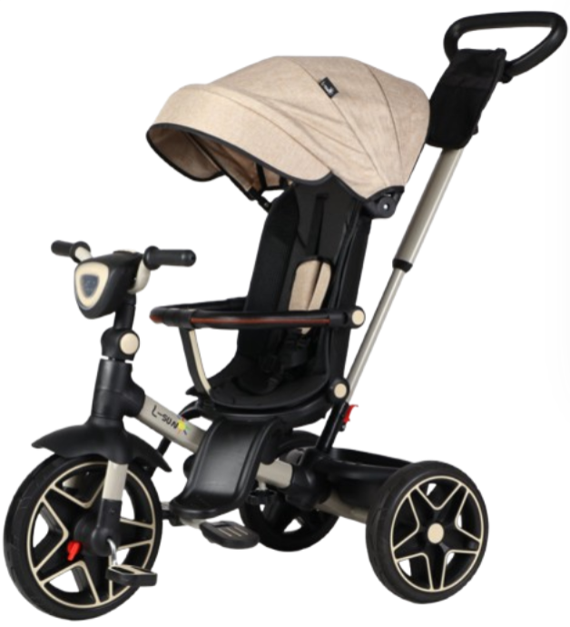 roata din fata are functia freewheel, chiar daca copilul ajunge la pedale, dar parintele nu vrea sa fie condusa tricicleta de catre copil, pedalele se vor invarti in gol, dar roata nu