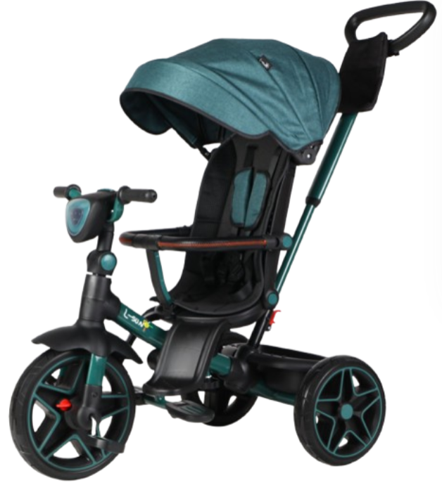 roata din fata are functia freewheel, chiar daca copilul ajunge la pedale, dar parintele nu vrea sa fie condusa tricicleta de catre copil, pedalele se vor invarti in gol, dar roata nu