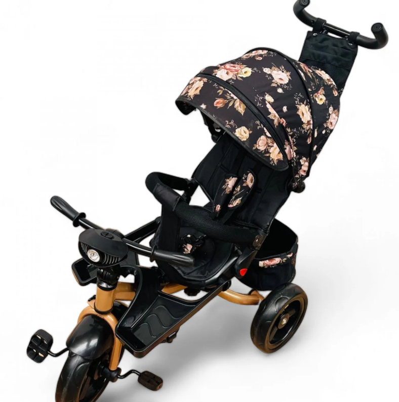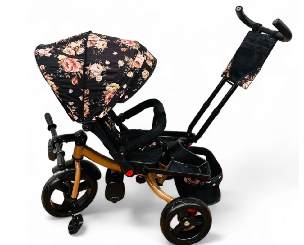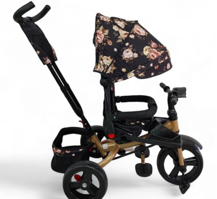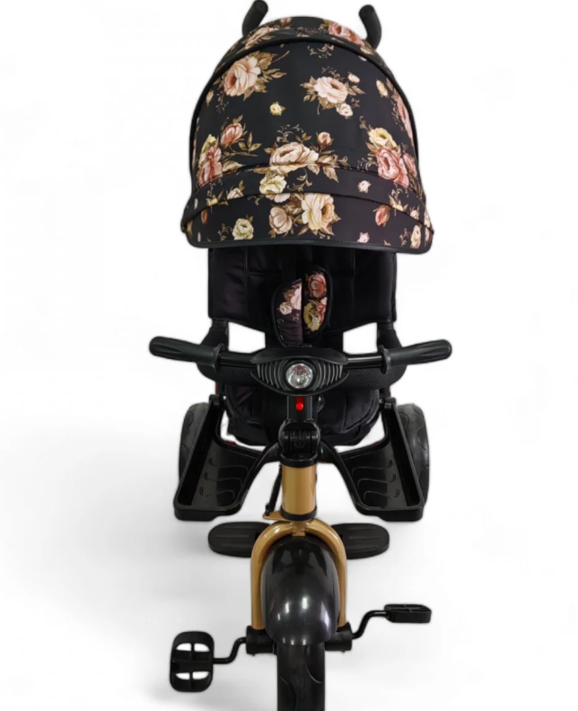 roata din fata are functia freewheel, chiar daca copilul ajunge la pedale, dar parintele nu vrea sa fie condusa tricicleta de catre copil, pedalele se vor invarti in gol, dar roata nu