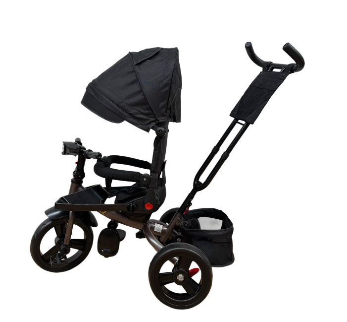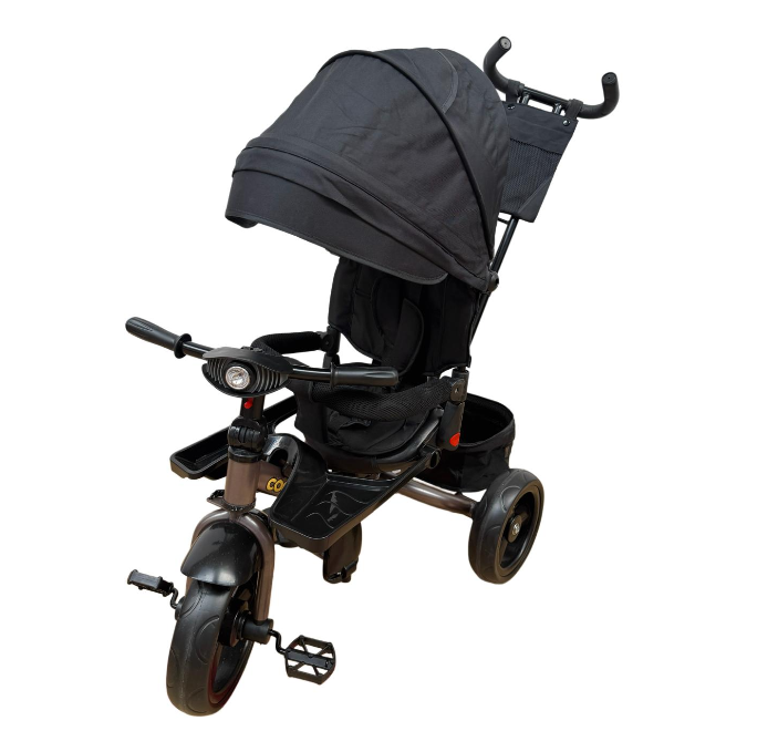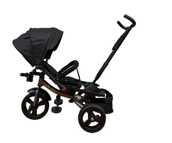 roata din fata are functia freewheel, chiar daca copilul ajunge la pedale, dar parintele nu vrea sa fie condusa tricicleta de catre copil, pedalele se vor invarti in gol, dar roata nu