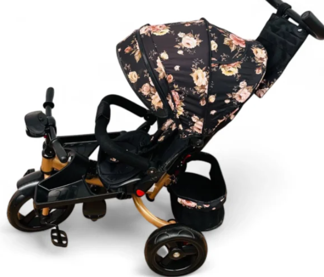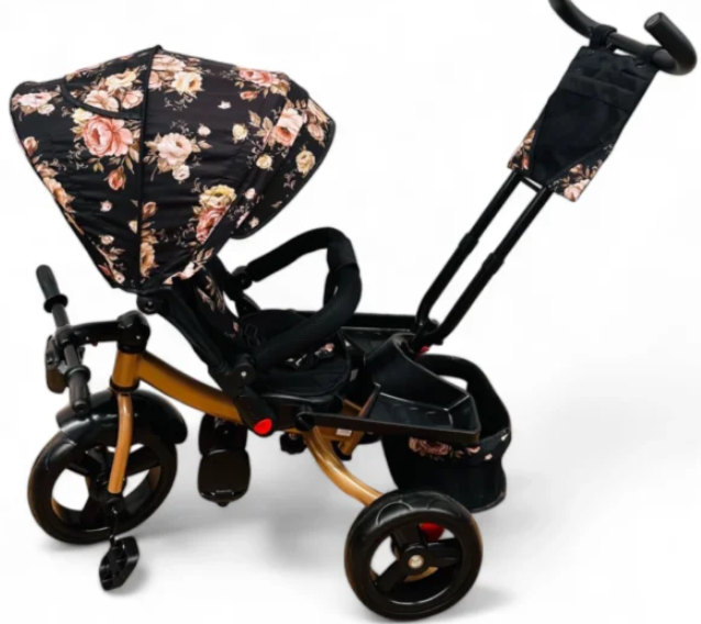 Tricicleta cu scaun reversibil Still, 6-36 luni, cu pozitie de somn, roata plina, Cadru auriu, Roz auriu