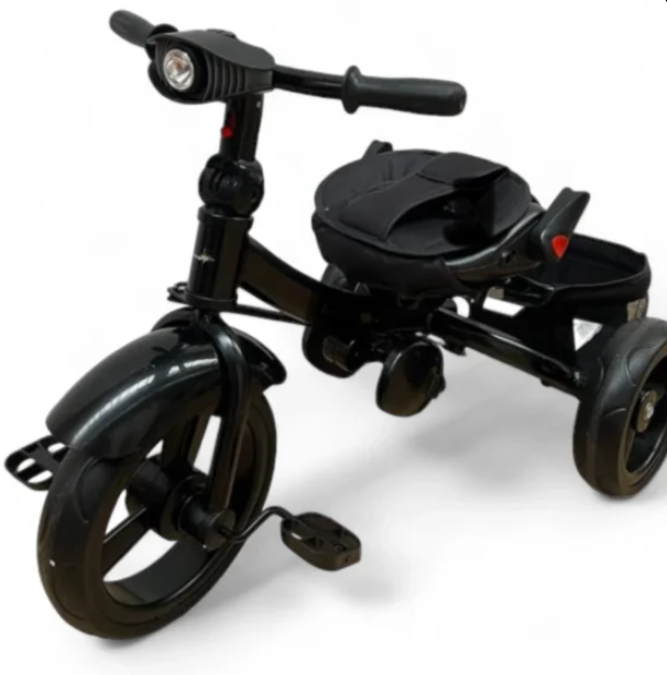 roata din fata are functia freewheel, chiar daca copilul ajunge la pedale, dar parintele nu vrea sa fie condusa tricicleta de catre copil, pedalele se vor invarti in gol, dar roata nu