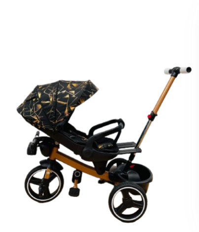 Tricicleta cu scaun reversibil Still, 6-36 luni, cu pozitie de somn, roata cauciuc, cu lumini si sunete, Cadru auriu